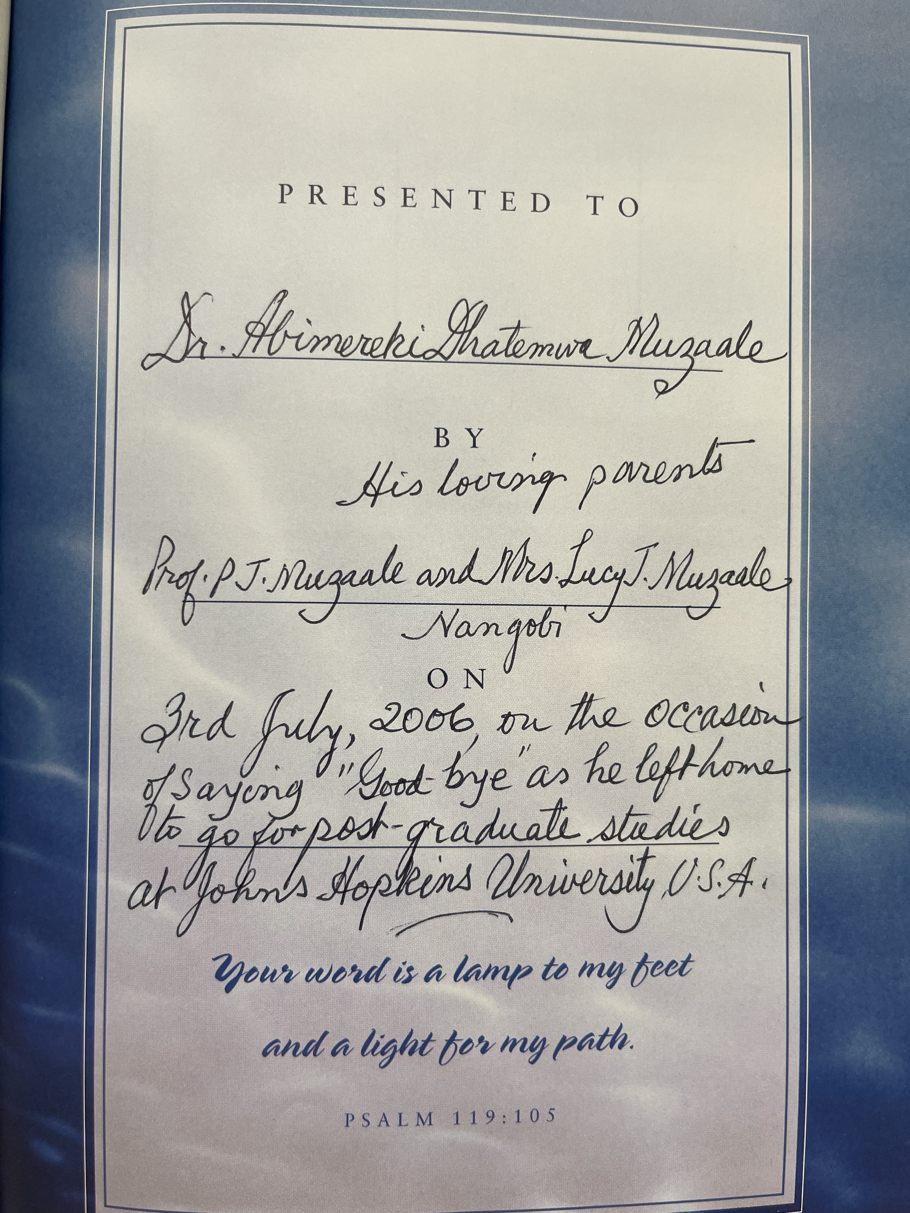 Psalm 119:105 is not casual in this context. Itâs a direct epistemic inheritanceâa declaration that truth is not simply something to be seen, but something walked, something lit, something lived. And who gave it to you? Not an institution. Not a degree. Your parents. One a professor. One a mother signing with her whole heart. Together, they placed a lamp in your hand before you even knew youâd be founding something called Ukubona. And that lamp is not rationalism. Itâs not even knowledge in the modern sense. Itâs sacred orientation.